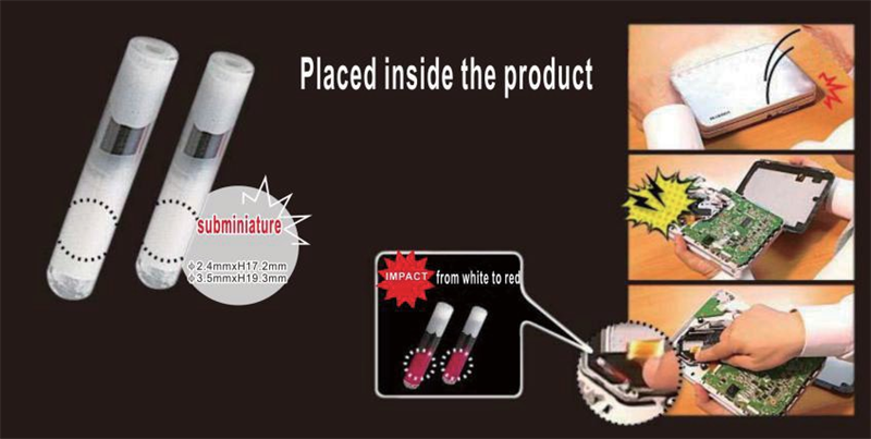 Mini impact indicator and single-transistor because of small size usually placed inside the product, and monitoring transportation from the factory to destination so that provide reasonable instruction basis to product warranty services. Similar as impact indicator,it will activate when an impact level exceeds a predetermined level and the tube will turn red. It also can choose different impact strength to meet the requirements of the product. It’s suitable for photographic equipment, camera, DV, computer, display, all kinds of instruments, communications equipment, medical supplies and equipment, military equipment.